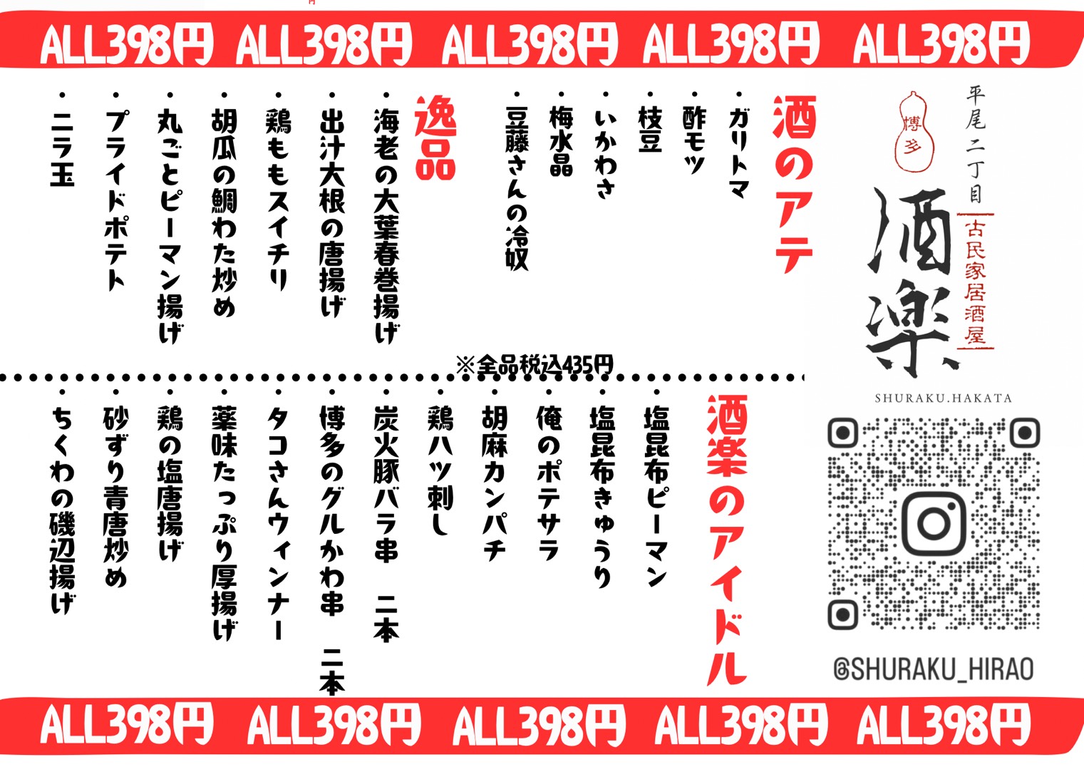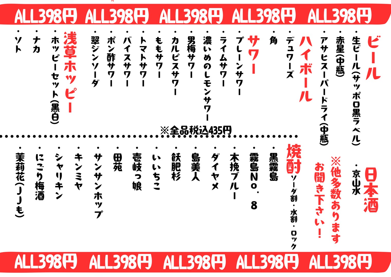 - ・ドリンクの値段はシュラ安以外は通常と変わりません。